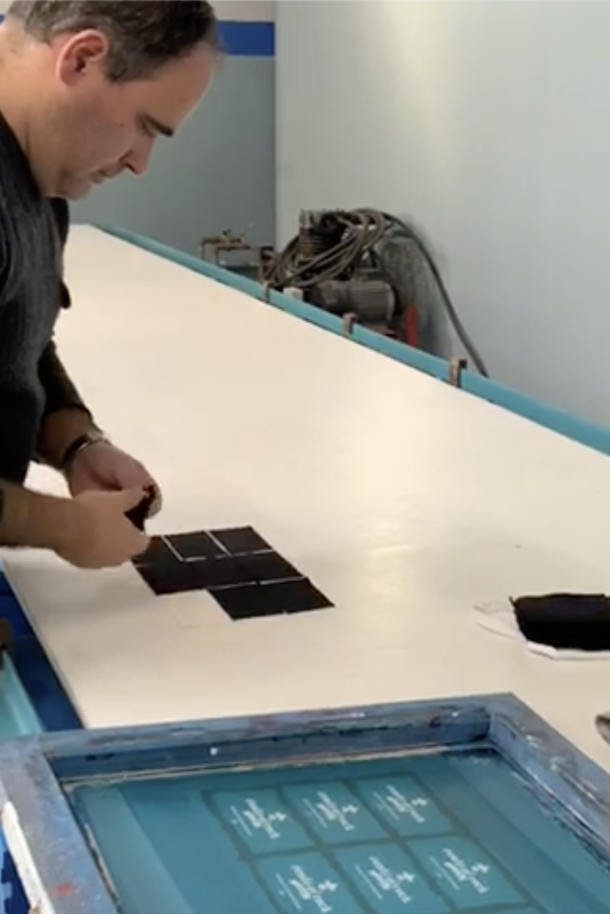 Anstatt gebrauchte T-Shirts oder Stoffreste des Zuschnitts zu entsorgen, werden diese feinsäuberlich zugeschnitten. Mittels Siebdruck wird unser Label aufgedruckt.
